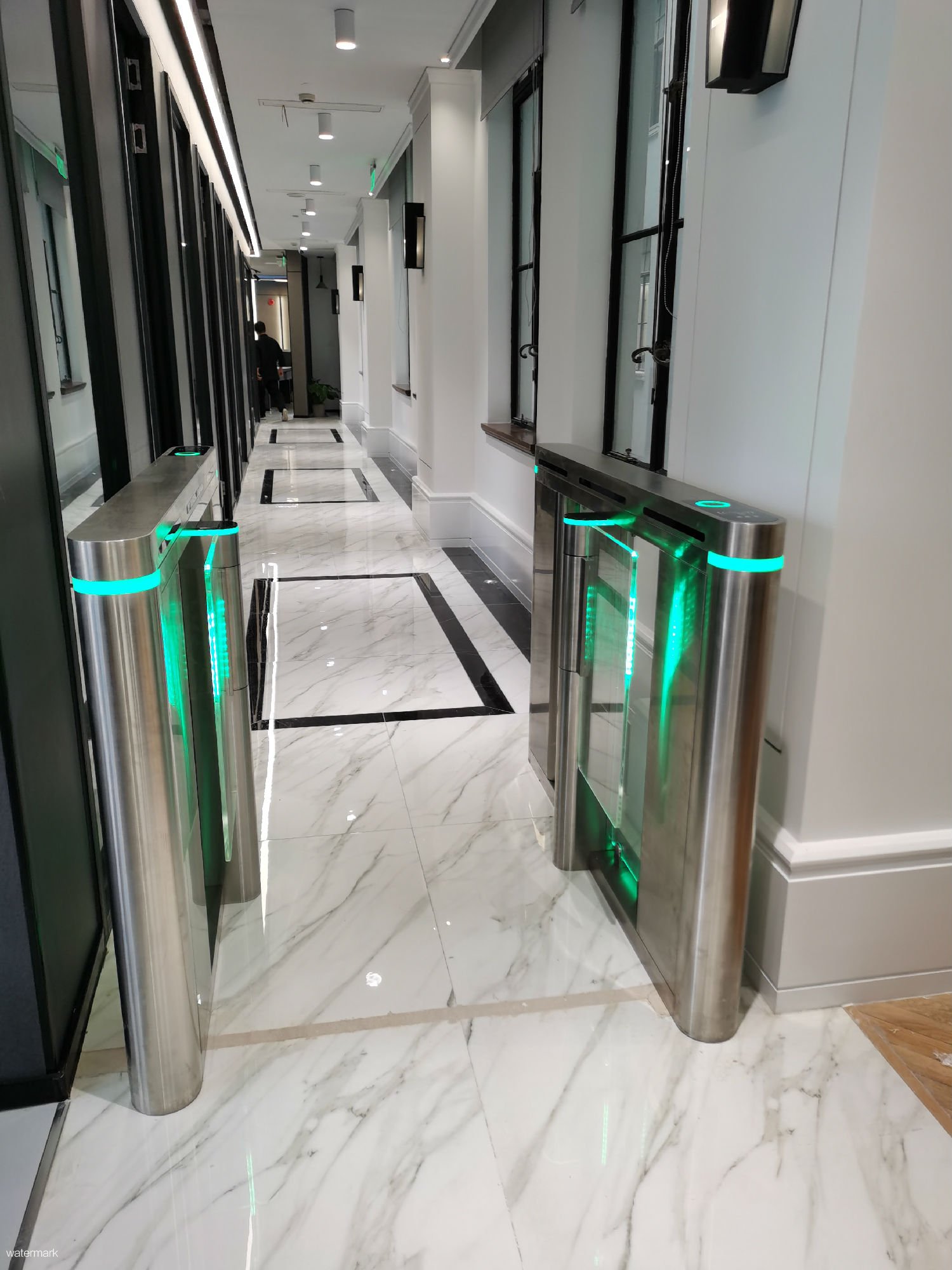 速通門(men)比一般的(de)擺(bai)閘(zha)過人速(su)度要快,大約1分鐘可快速通行35人(ren)-40人(ren)左右,且速通門造(zao)型美觀(guan)、優雅(ya),在(zai)美觀的(de)外(wai)形(xing)上和突(tu)出的(de)智(zhi)能化等功能相結合,也為寫字樓、大廈等(deng)增(zeng)強了智能化的(de)科技(ji)感(gan)。