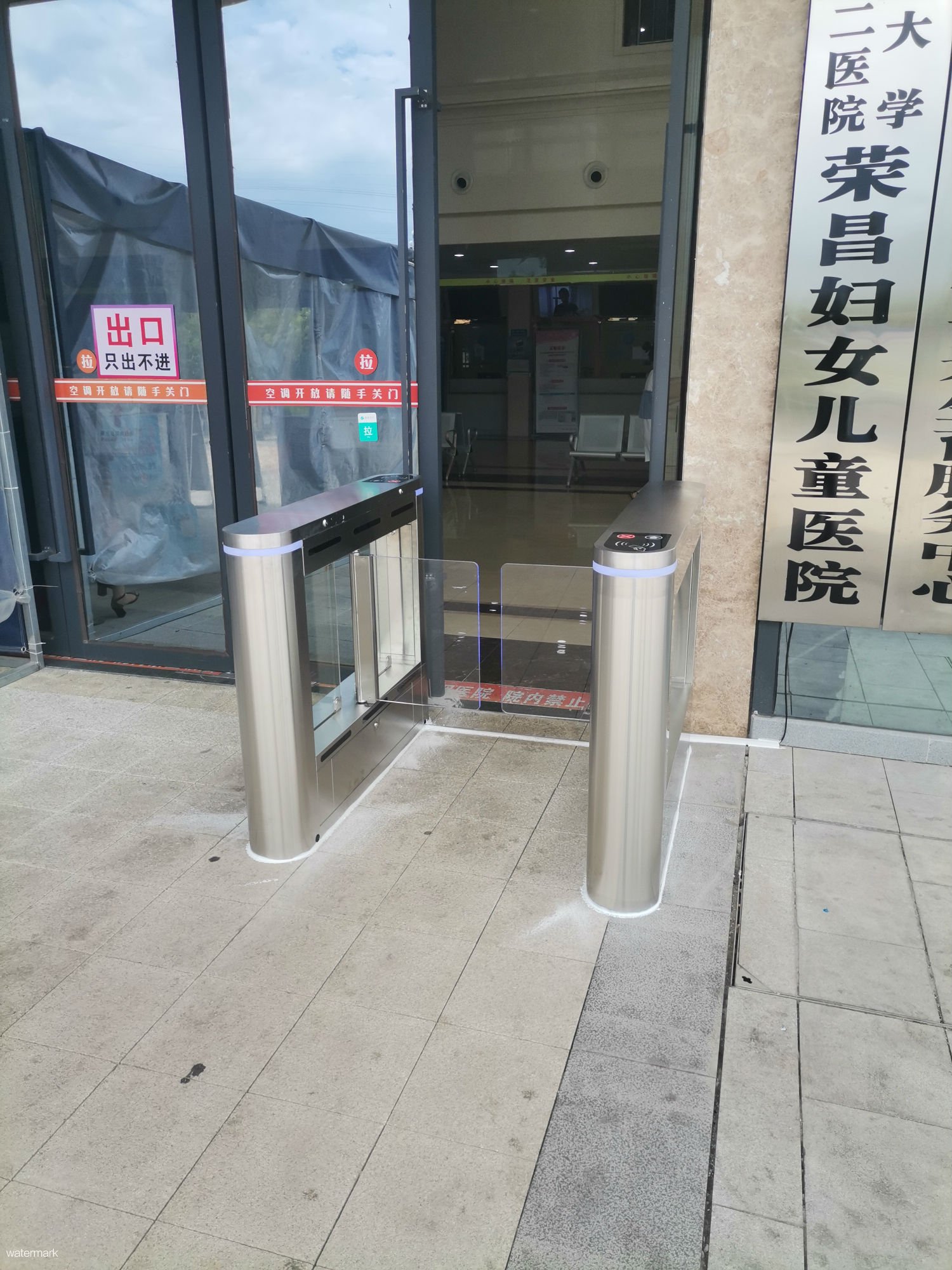 榮昌區婦幼(you)保健院為落實(shi)疫情防(fang)控,改(gai)善患(huan)者就醫體驗,讓院內通(tong)行管理(li)更加高效,就醫環境更為安全、便捷(jie),在(zai)醫院入(ru)口處使用了深圳市鐵軍智能科技有限公司的測溫人臉識別小(xiao)擺閘設備。